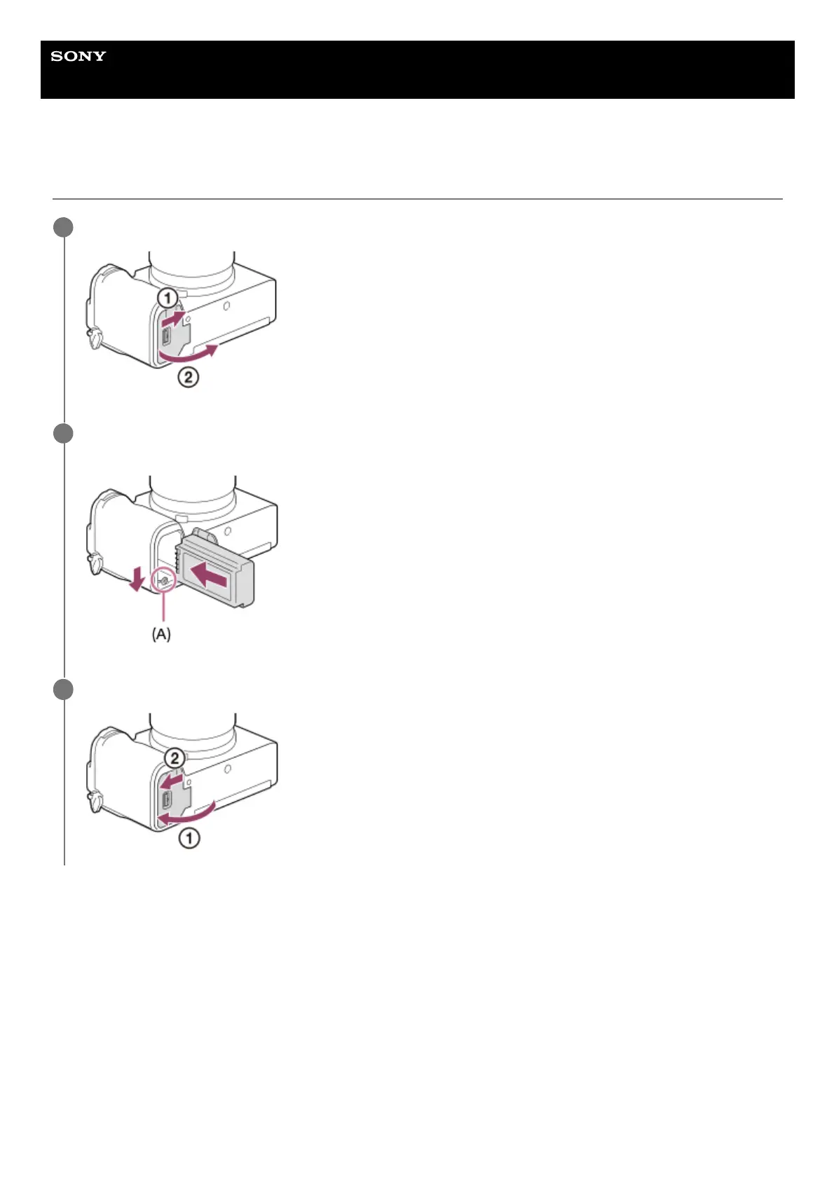 Make sure that the access lamp is not lit, and turn off the camera. Then, slide the lock lever (A) and remove the battery