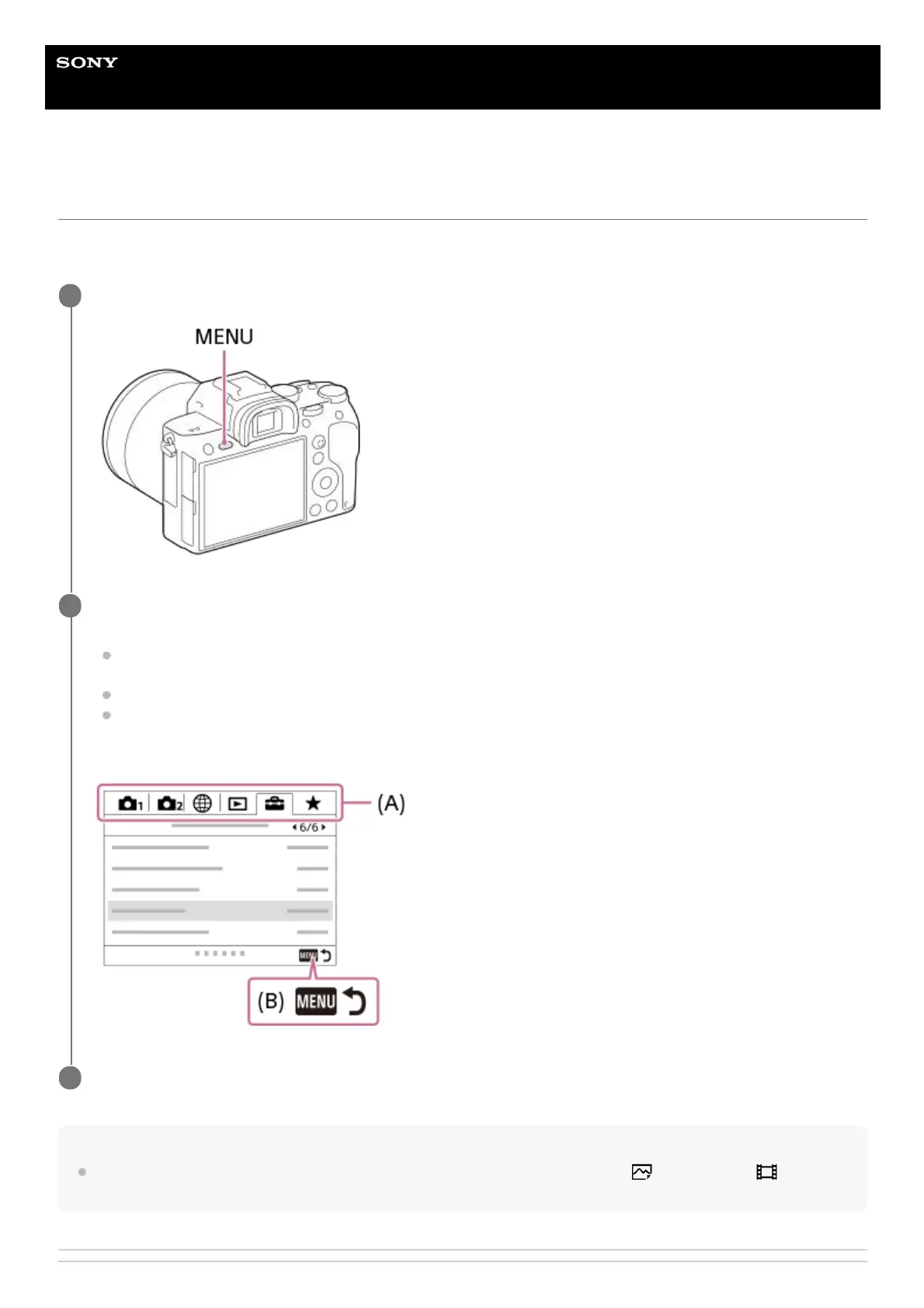 You can change settings related to all the camera operations including shooting, playback, and operating method. You