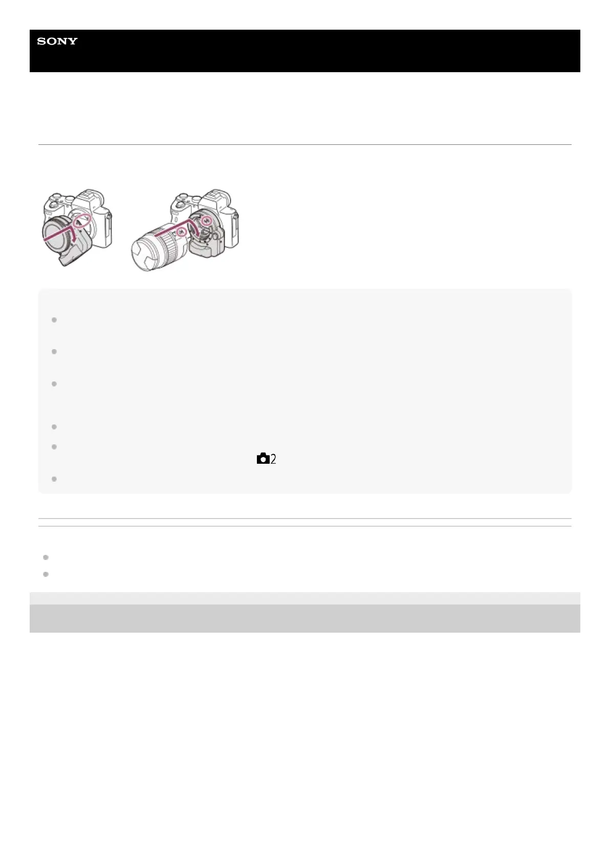 You may not be able to use the Mount Adaptor or auto-focus with certain lenses. Consult your Sony dealer or local authorized
