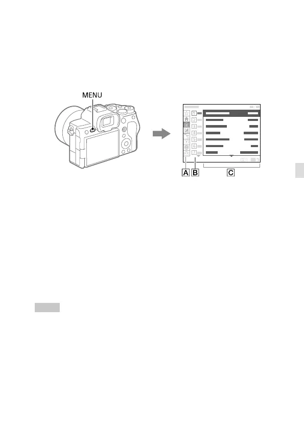 • Pour la liste des éléments affichés sur l’écran du menu, voir « Liste des