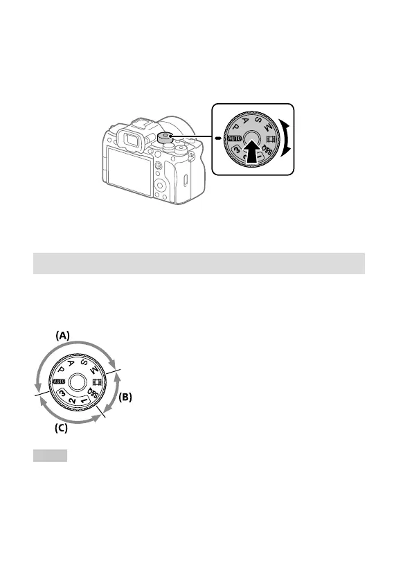 • Tournez le sélecteur de mode tout en appuyant sur le bouton de