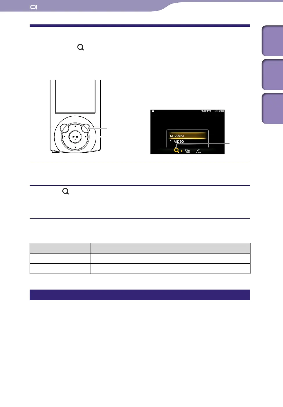 When you select (Search) on the video playback screen or the list screen, the