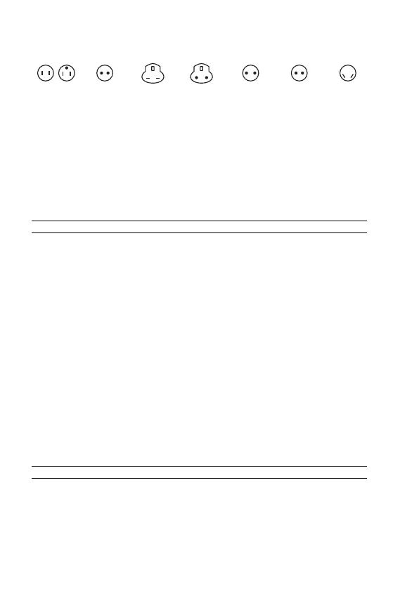 Countries/regions Voltage Frequency (Hz) Plug type