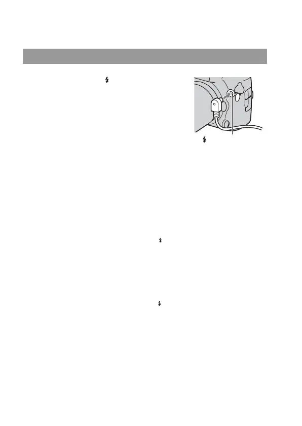 • Before you connect the flash sync cord to the (flash sync) terminal, turn off the
