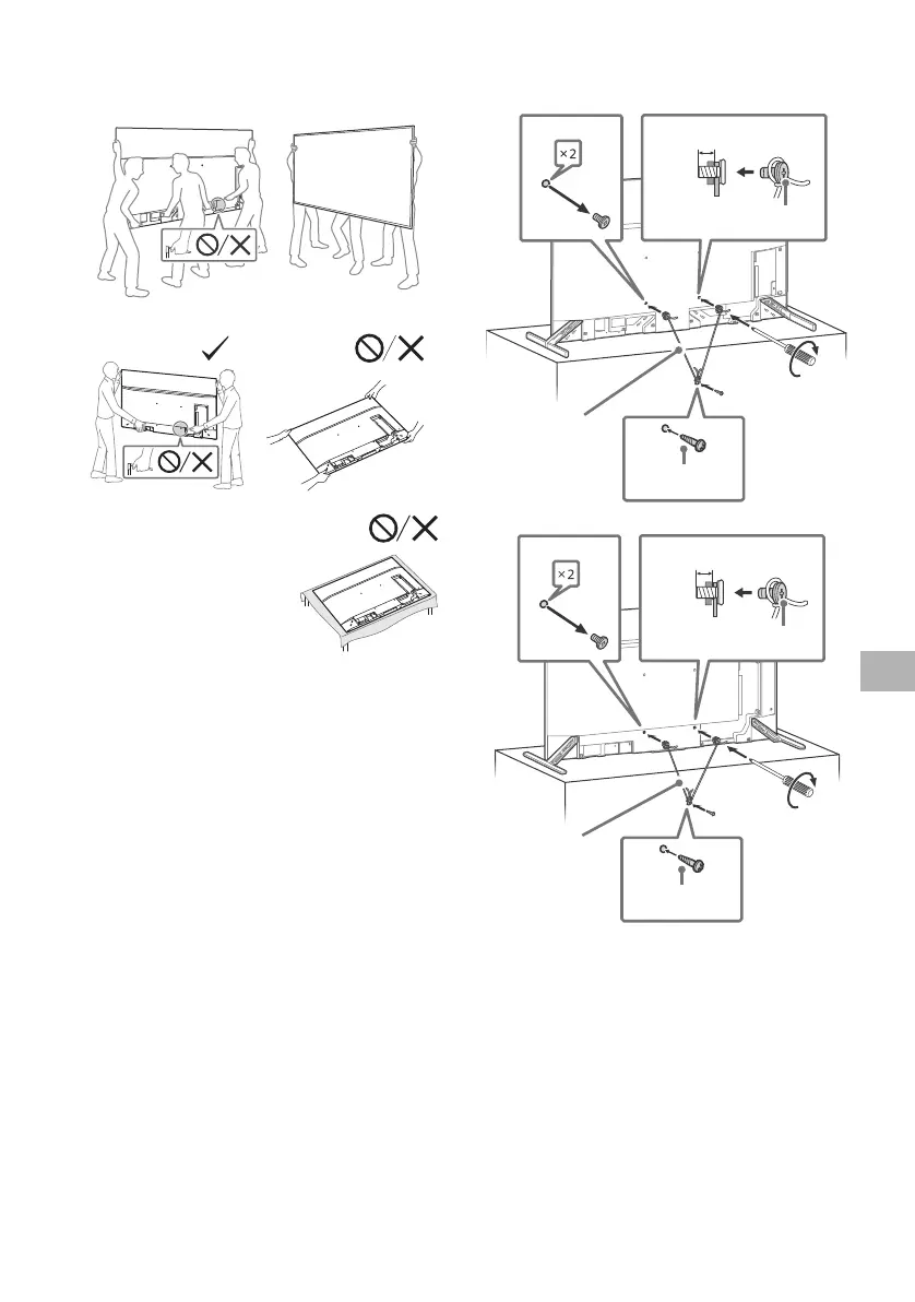 • Når du transporterer TV-en for hånd, må du holde den som vist