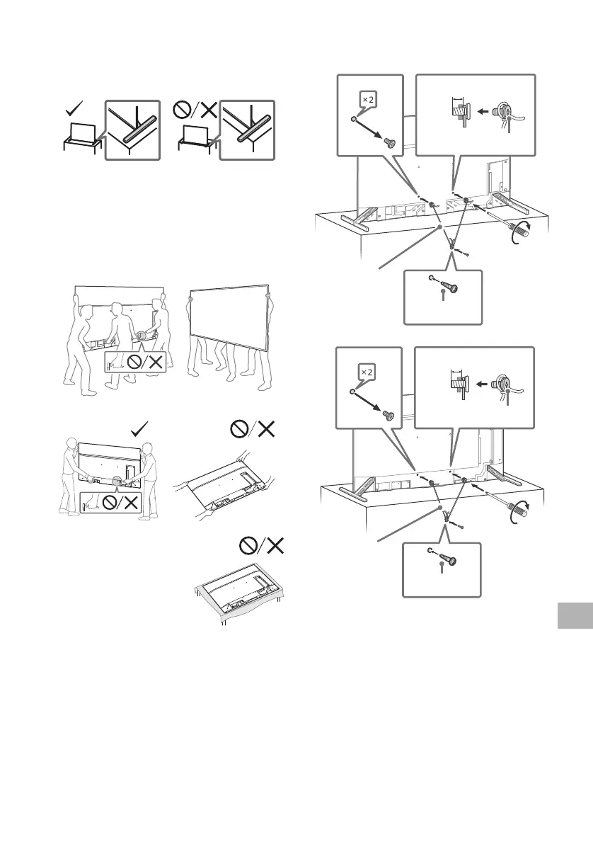 • Поставете телевизора така, че стойката за маса на ТВ да не е