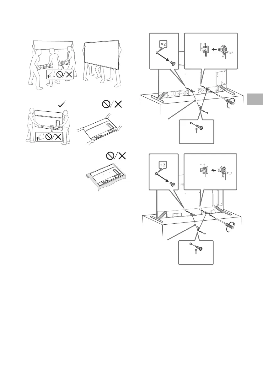 • Wanneer de televisie met de hand wordt gedragen, dient u deze