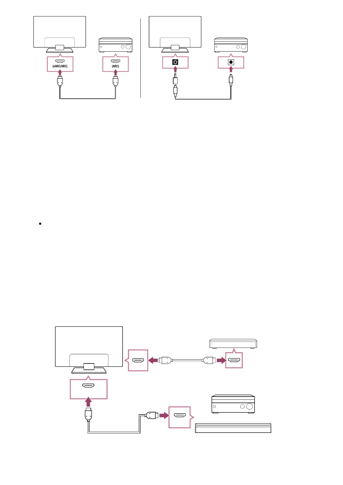 Connect the audio system to the TV’s HDMI input terminal bearing the text “ARC” or