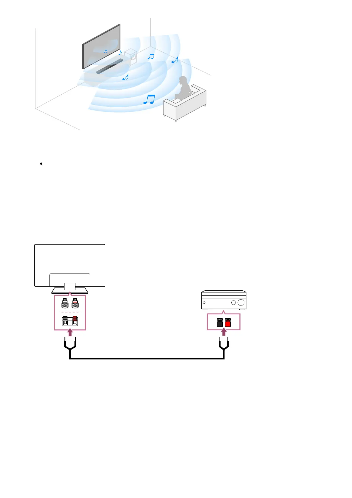 Use a speaker cable (not supplied) to connect the AV receiver to the CENTER SPEAKER IN