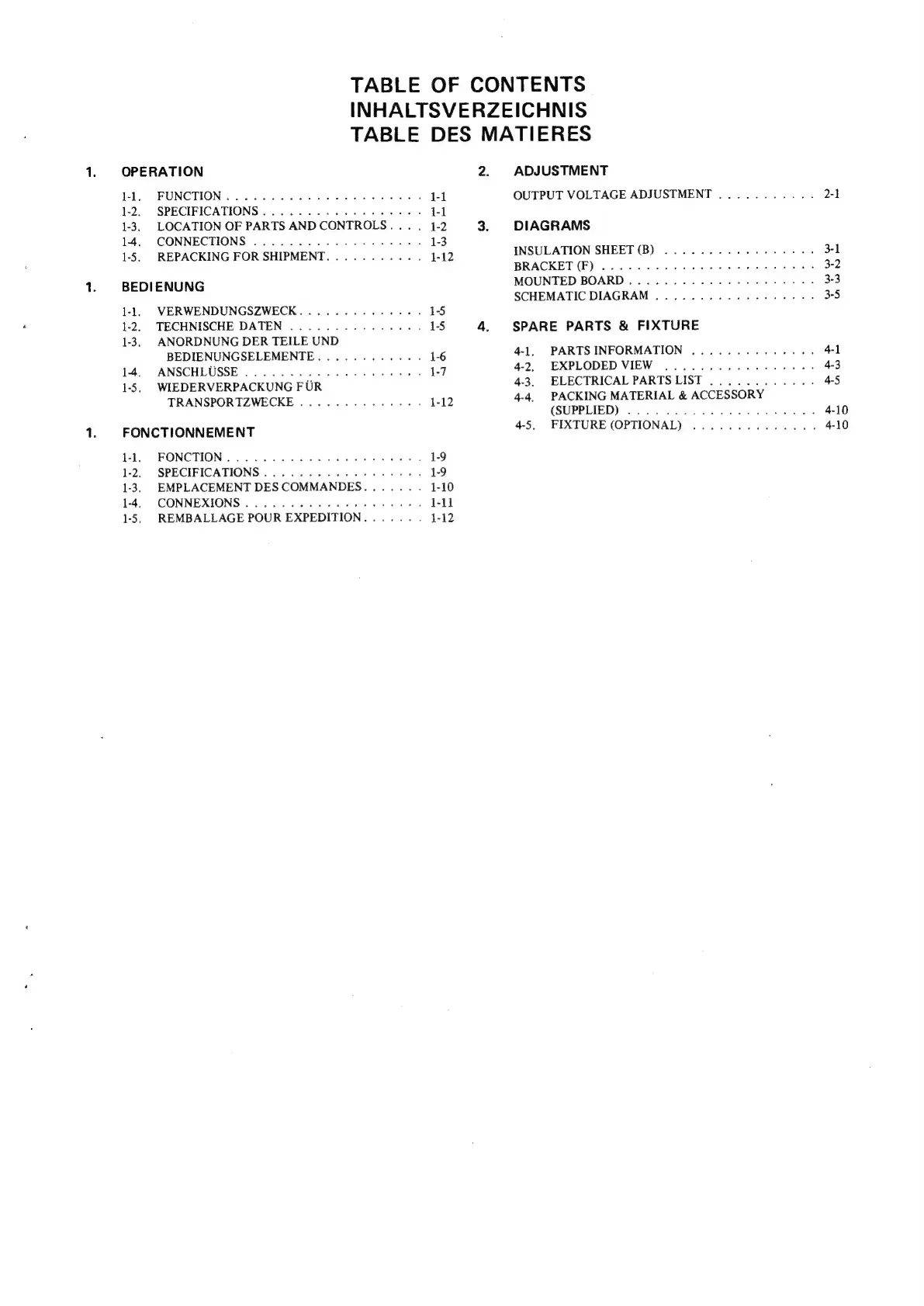 Sony AC-500CE - Table of Contents