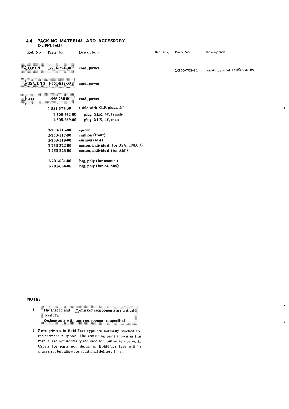 Sony AC-500CE - 4-4: Packing Material & Accessory; (Supplied)