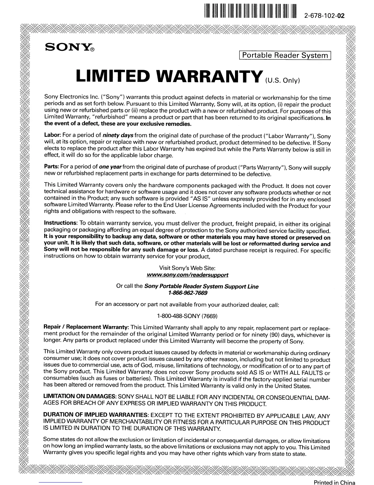 LIMITATION ON DAMAGES: SONY SHALL NOT