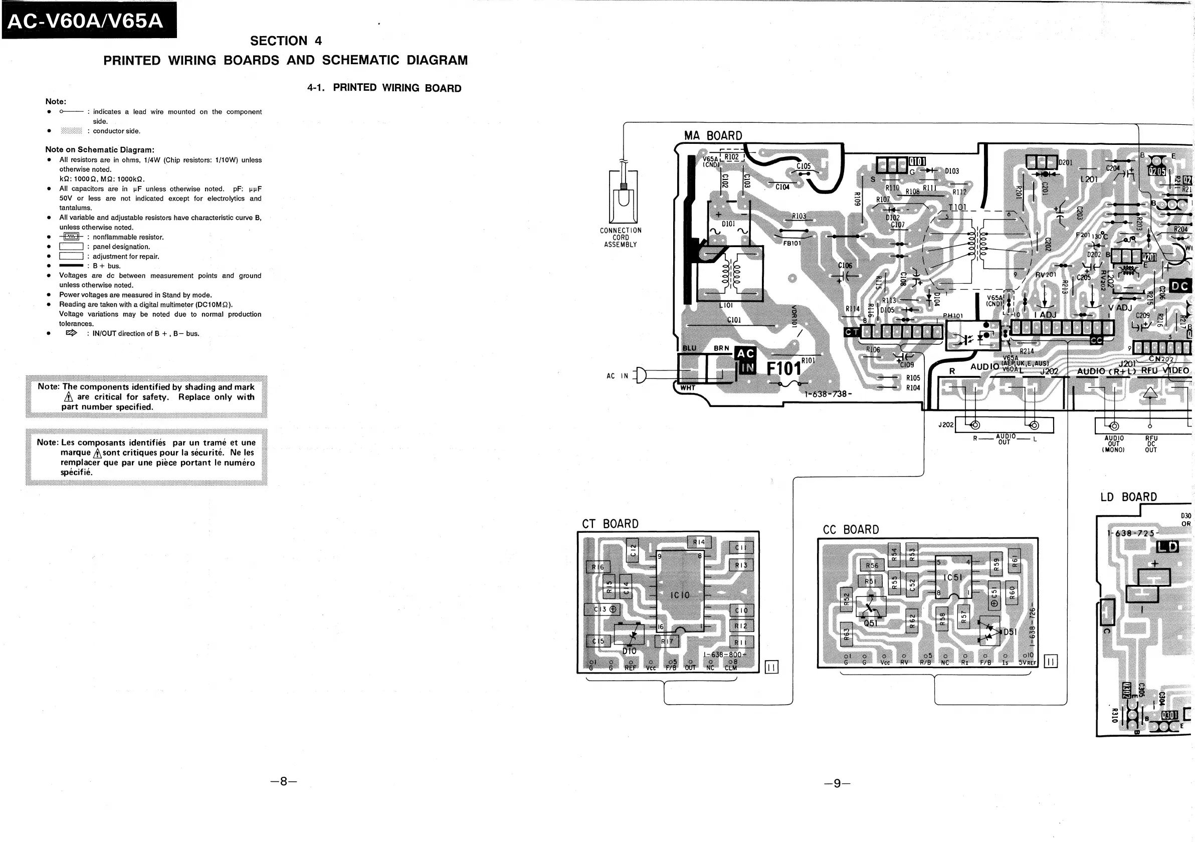Sony AC-V60A - Circuit Diagrams and Layouts; Printed Wiring Board Layouts