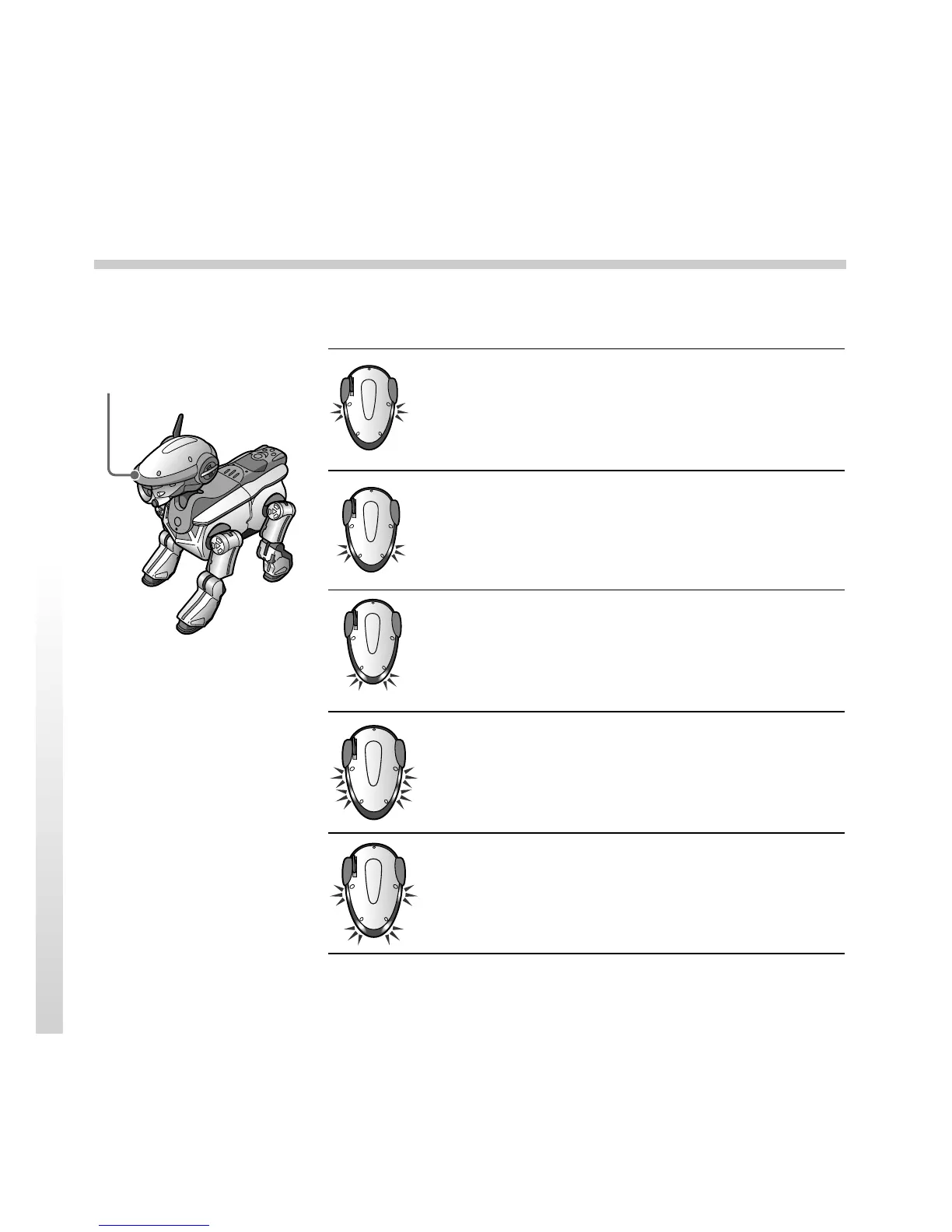 These face side lights indicate the emotions of AIBO. The examples are shown