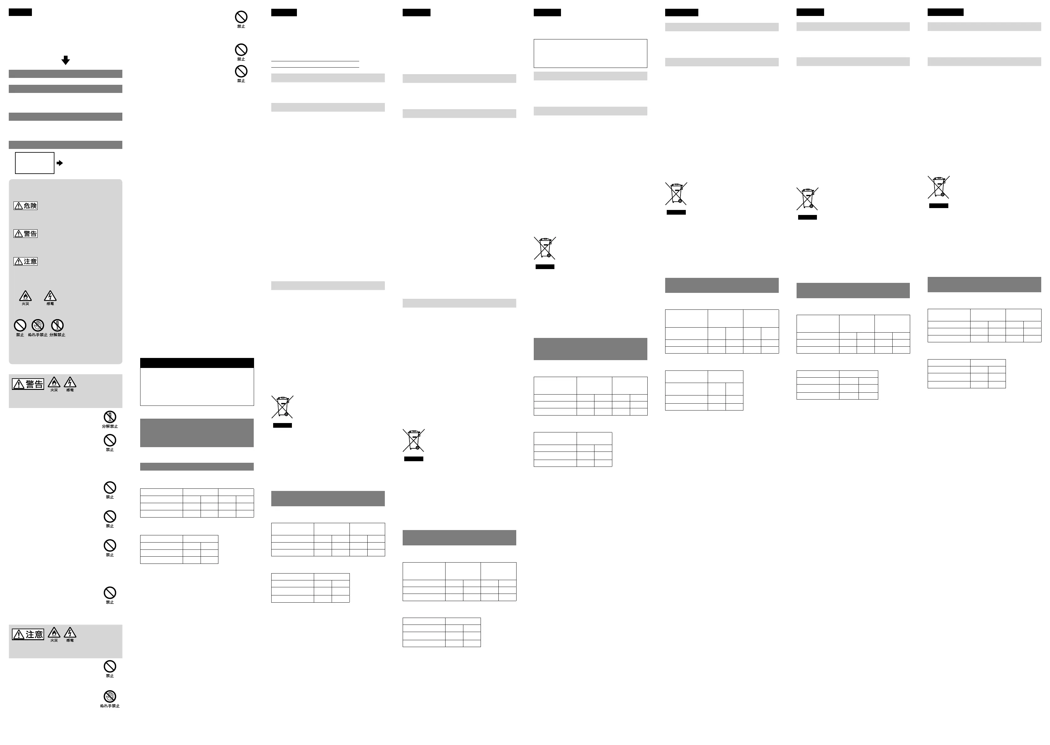 下記の注意事項を守らないと、火災、大けがや死亡にいた