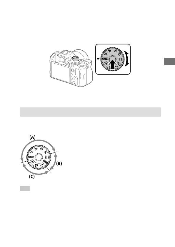 • Turn the mode dial while pressing the mode dial lock release button in
