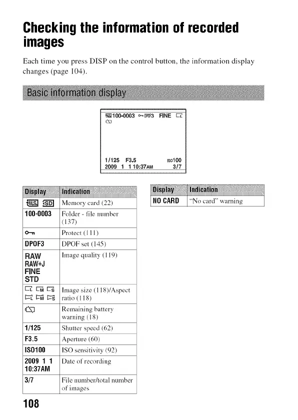 Each time you press DISP on the control button, the information display