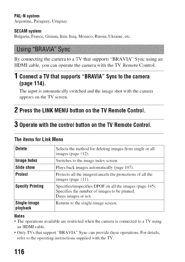• Tire operations available are restricted when the camera is colmected to a TV using