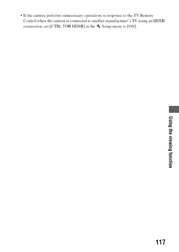 Conlrol when lhe camera is connected Io anolher manulacturer's TV using an HDMI