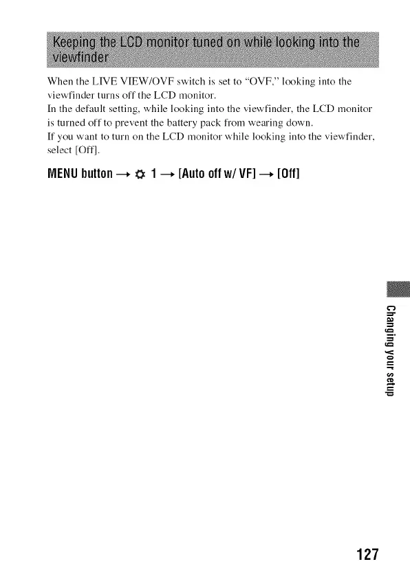 If you want to turn on the LCD monitor while looking into the viewfinder,