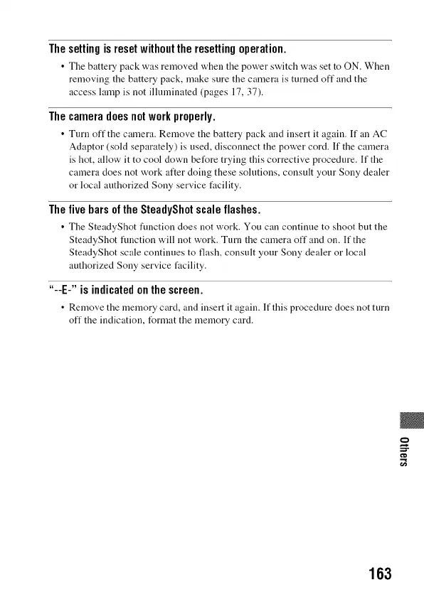 • Turn off the camera. Remove the battery pack and insert it again. If an AC