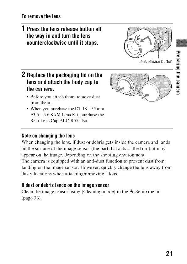 When changing the lens, if dust or debris gets inside the camera and lands