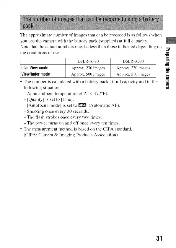 Viewfinder mode Approx. 500 images Approx. 510 images