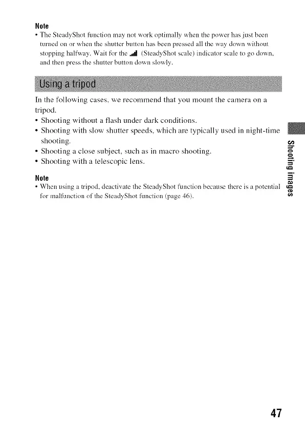 • When using a tripod, deactivate lhe SleadyShol function because fllere is a potential