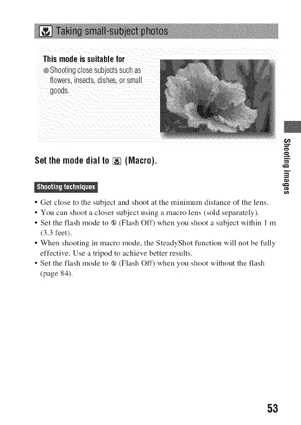 • When shooting ill macro mode, the SteadyShot function will not be fully