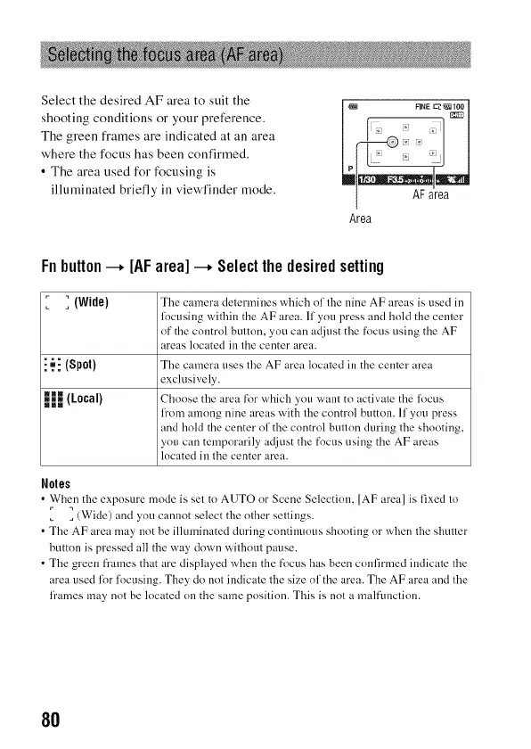 • When the expnsure mode is set to AUTO or Scene Selection, [AF area] is fixed to