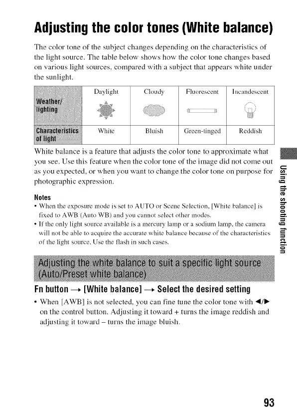 Adjustingthe colortones(White balance)
