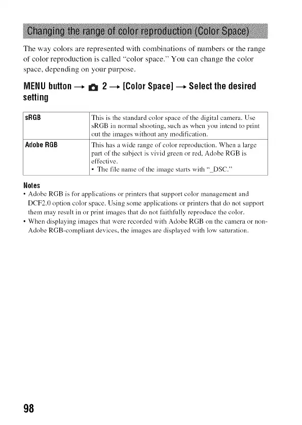 • When displaying images that were recorded with Adobe RGB on the camera or non-