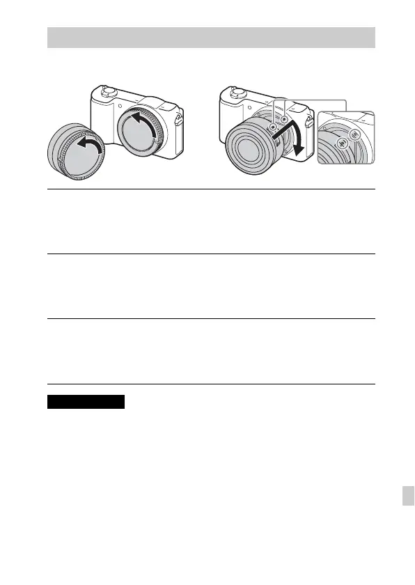• Når objektivet fastgøres, må du ikke trykke på objektivfrigørelsesknap.