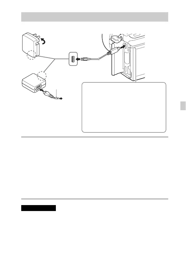 • Falls die Ladekontrolllampe an der Kamera blinkt, wenn das Netzteil an die