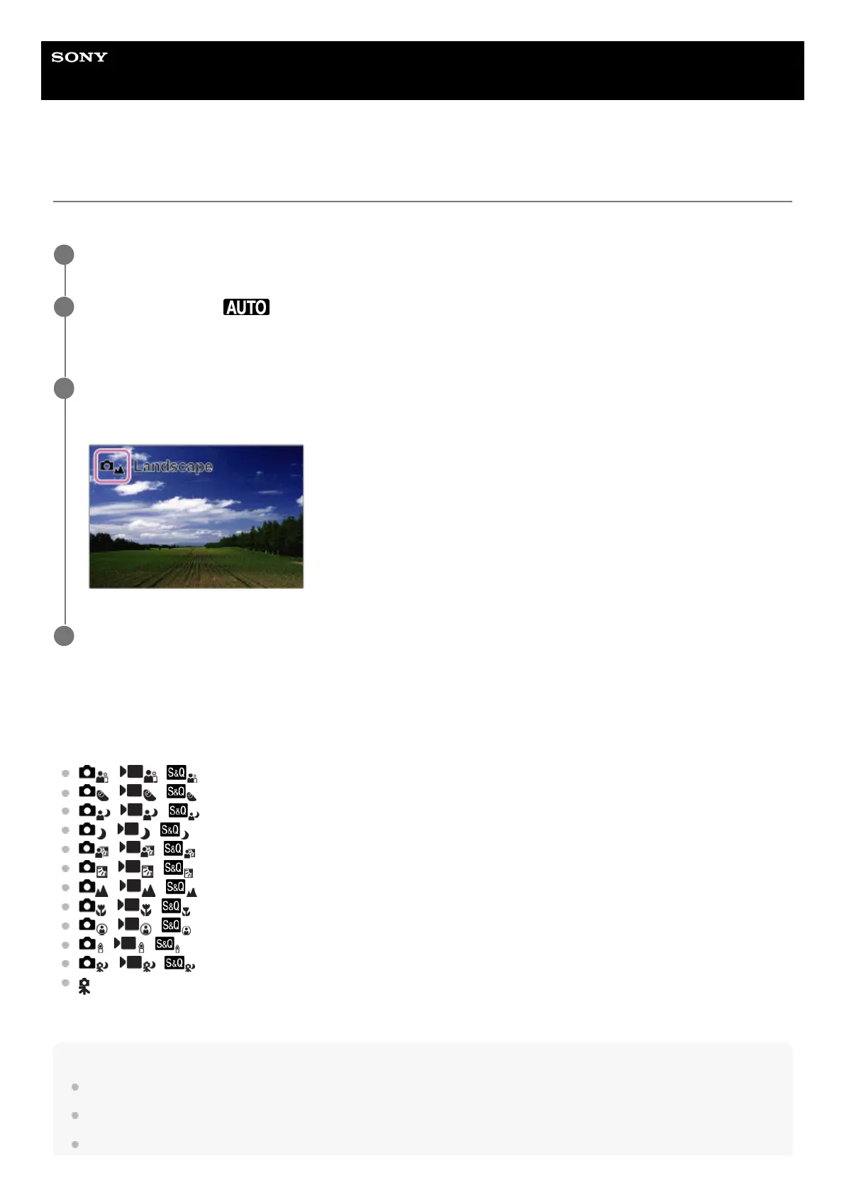 When the camera recognizes certain scenes, the following icons and guides are displayed at the top of the screen: