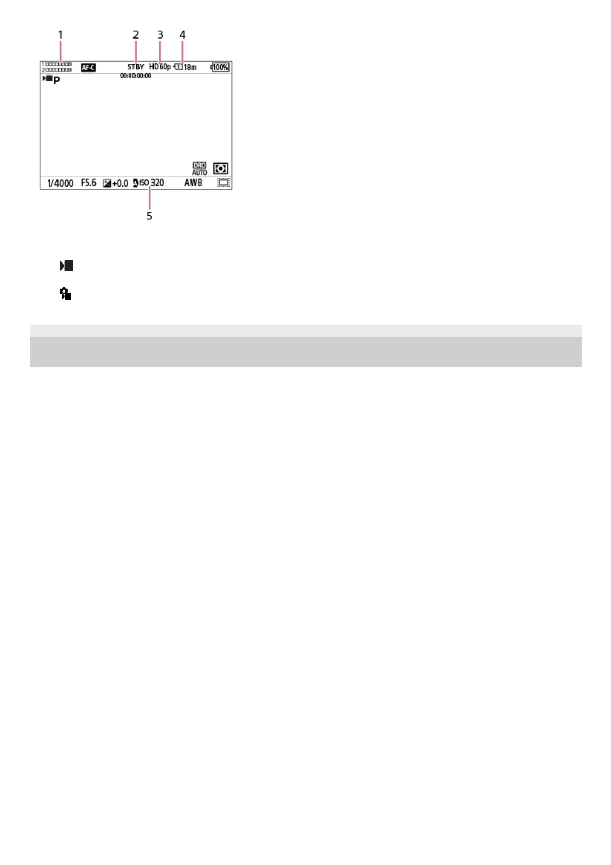 Slot number of the memory card recording the shooting data and recordable movie time4.