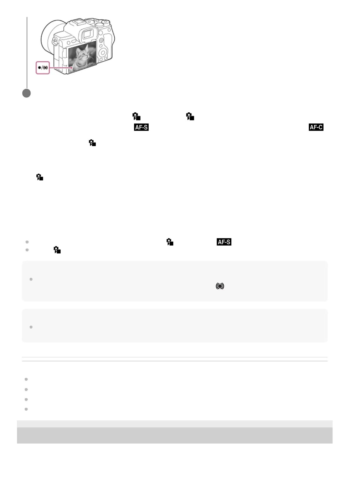 shot or change the focus mode or focus area settings. In [Continuous AF] mode, (focus indicator) lights up and the beep