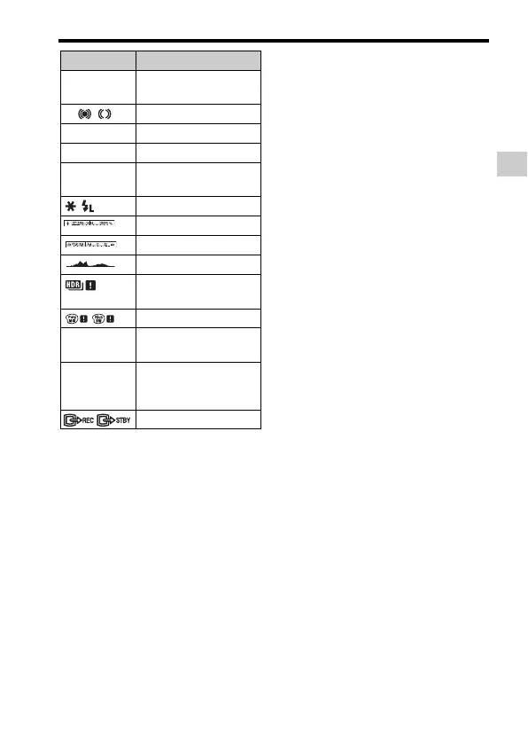 List of icons on the monitor