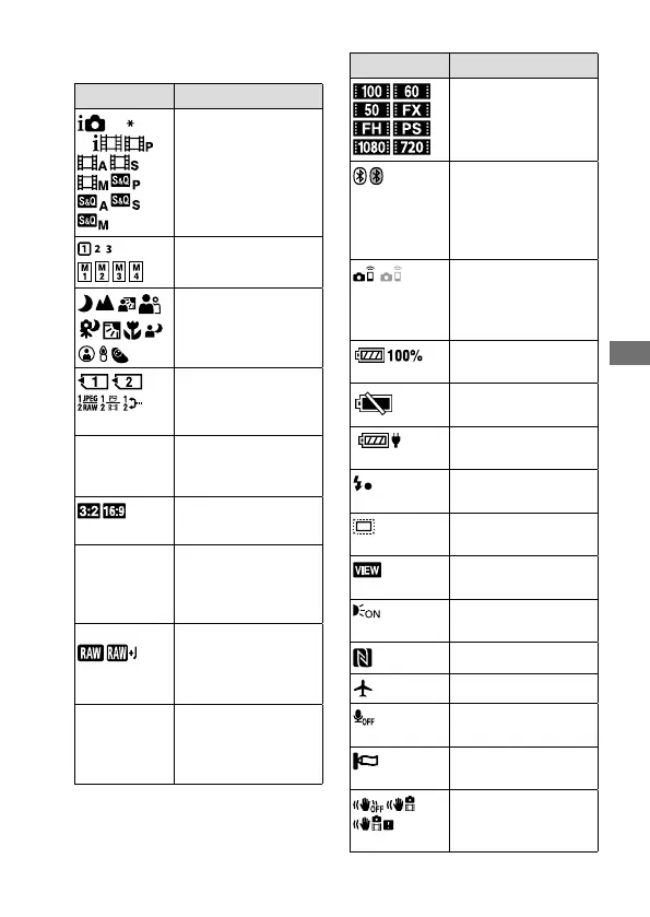 MENU items/List of icons