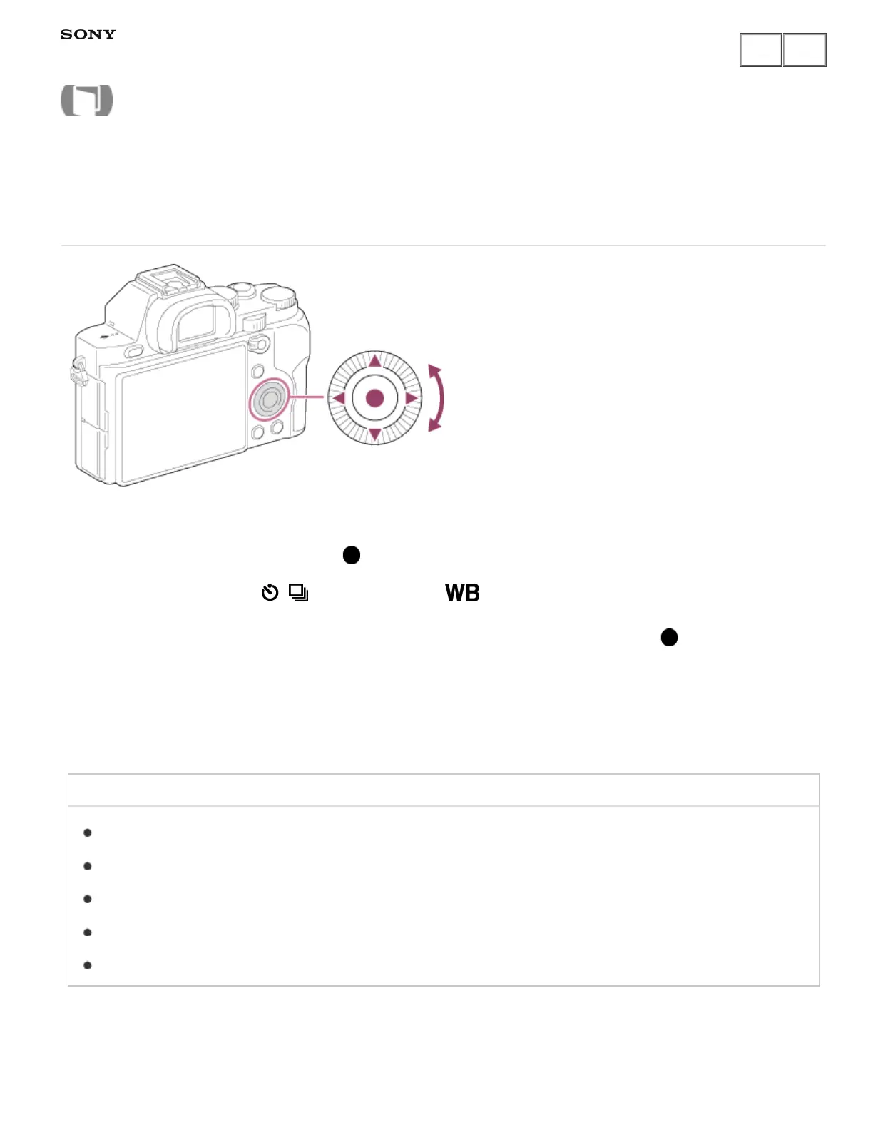 When you turn or press the top/bottom/right/left side of the control wheel, you can select setting items. Your