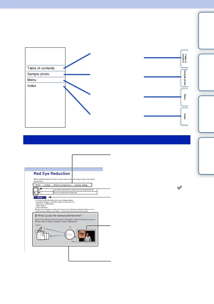 Click on a button at upper right on the cover and each page to jump to the corresponding