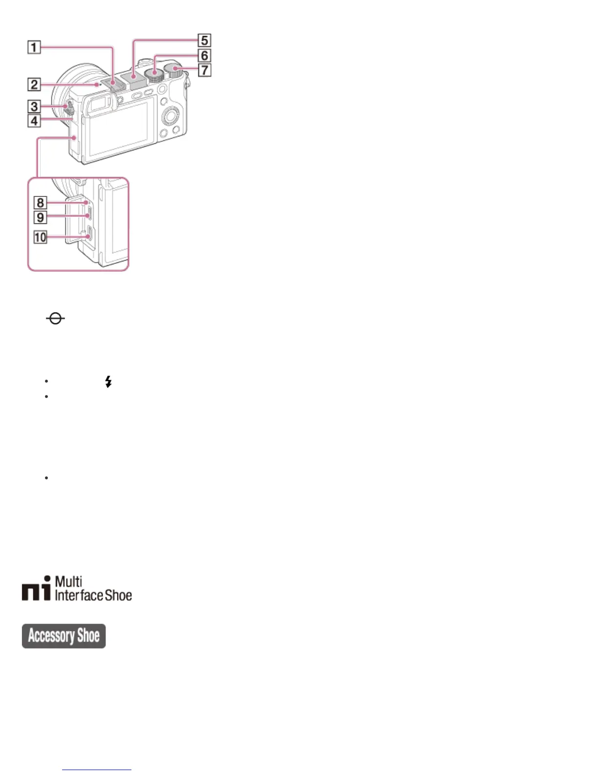 For details on compatible accessories for the Multi Interface Shoe and the Multi/Micro USB Terminal, visit the Sony web site, or