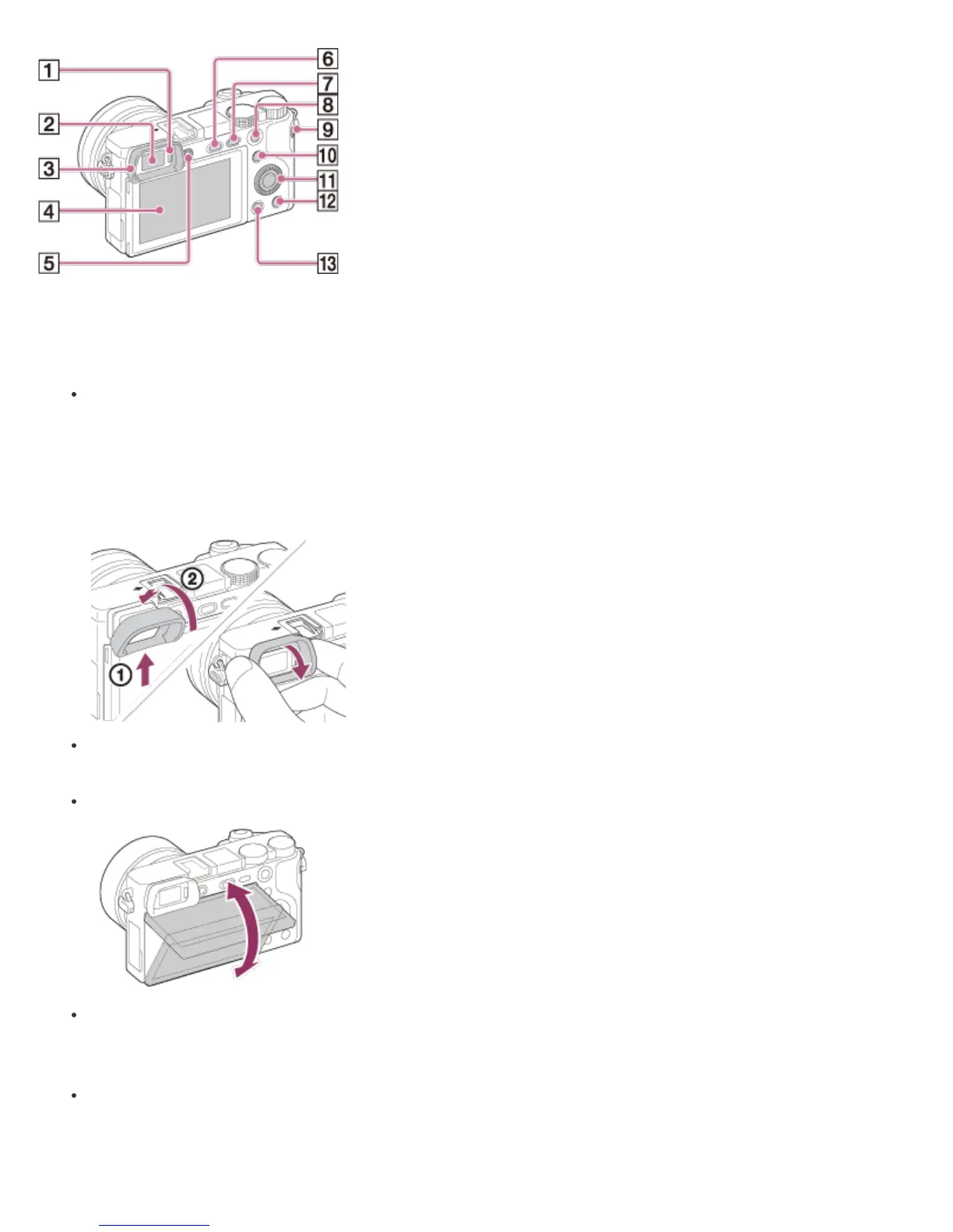 Remove the eyepiece cup when you attach an accessory (sold separately) to the Multi Interface Shoe.