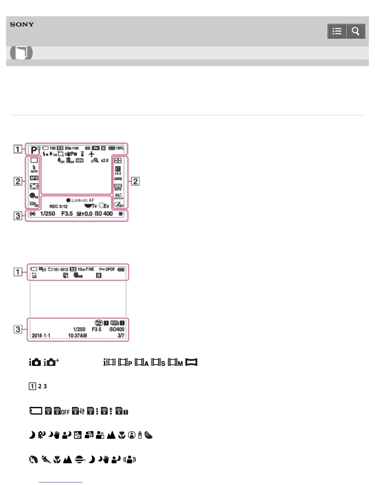 List of shooting mode icons