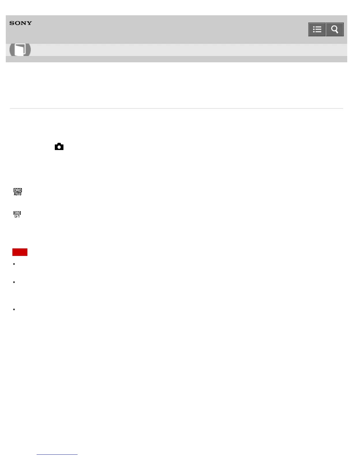 [DRO/Auto HDR] is fixed to [Off] when the shooting mode is set to [Sweep Panorama], or when [Multi Frame NR] or