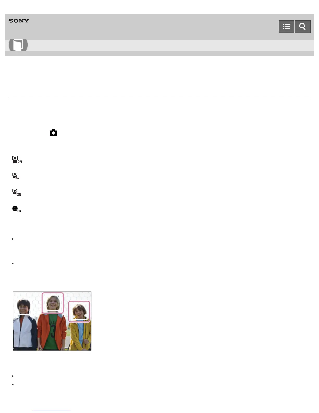 selects the first prioritized face and the face detection frame over that face turns white. The face detection frames of