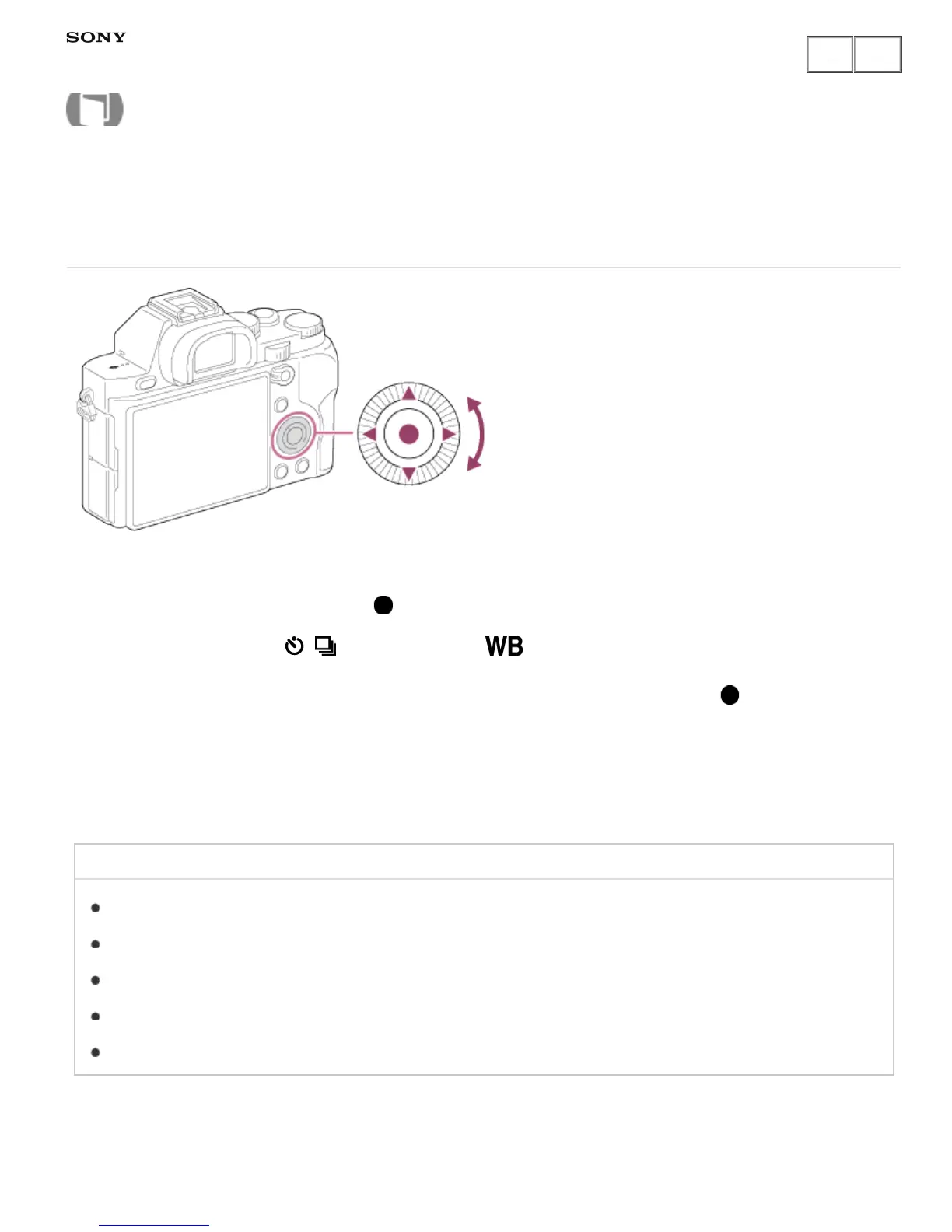 When you turn or press the top/bottom/right/left side of the control wheel, you can select setting items. Your