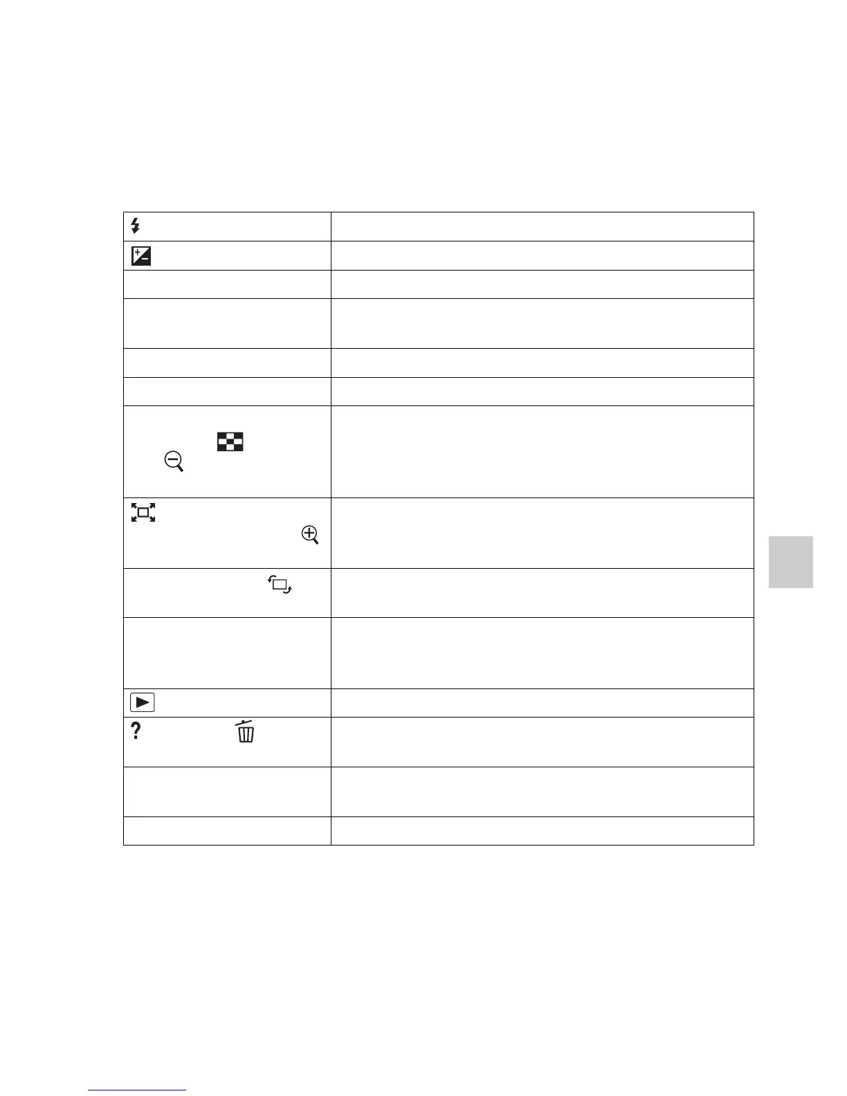 Displays a shooting tip or In-Camera Guide./Deletes