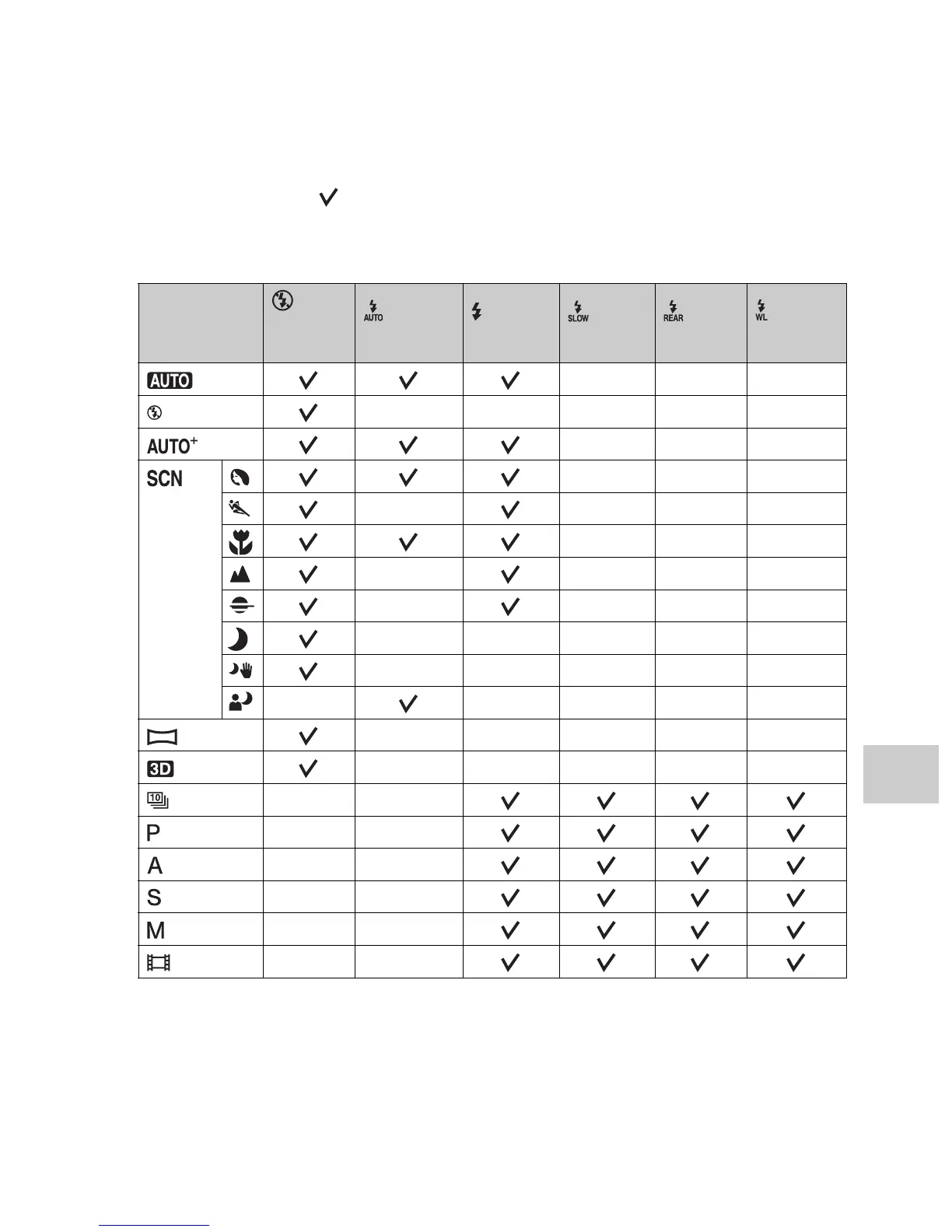 The flash modes you can select depend on the shooting mode and functions