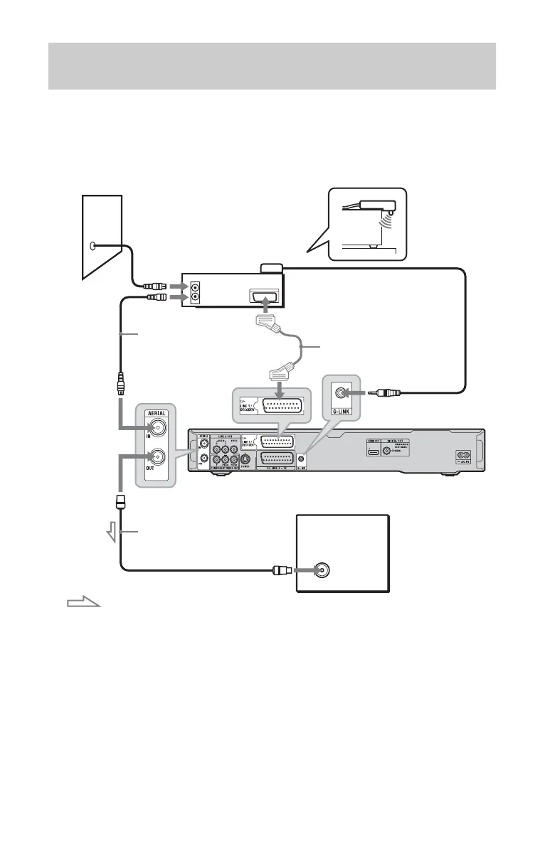 If your set top box receiver does not have an aerial output jack, connect the aerial cable to the recorder’s